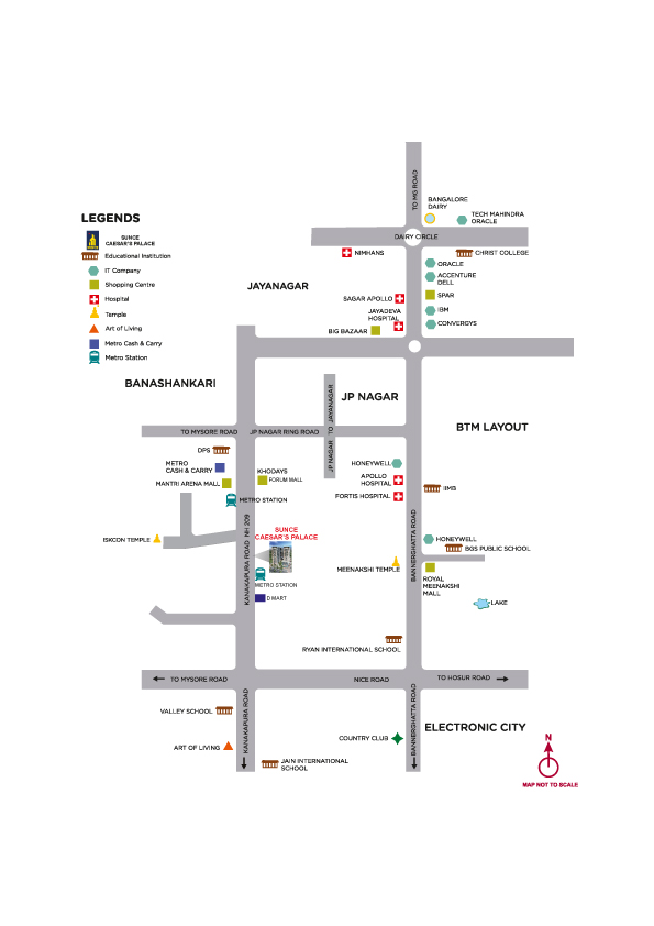 • Sunce Caesar Palace located on Kanakapura Main Road which will be 8 lane National Highway (NH-209).